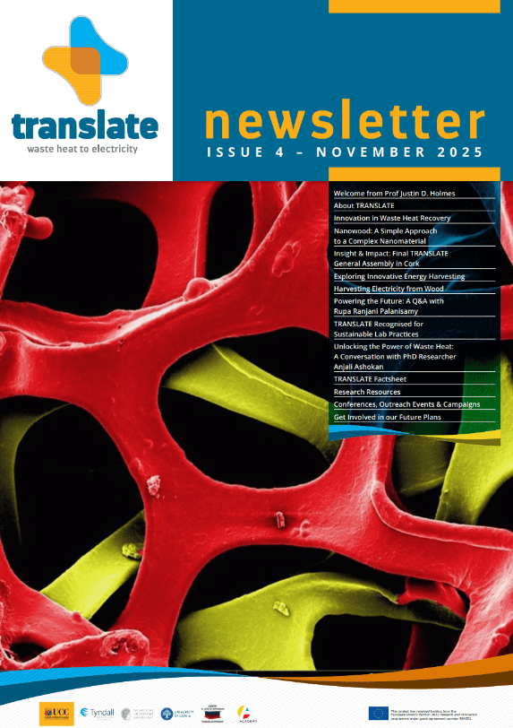 This edition offers a behind-the-scenes look at how the consortium has pushed the boundaries of nanofluidics, developed sustainable materials from everyday resources like wood, and brought new thinking to the future of low-grade waste heat recovery. You’ll also find stories from the researchers who shaped the project, insights from our final General Assembly in Cork, and a look at how TRANSLATE’s work now connects with broader European sustainability initiatives.